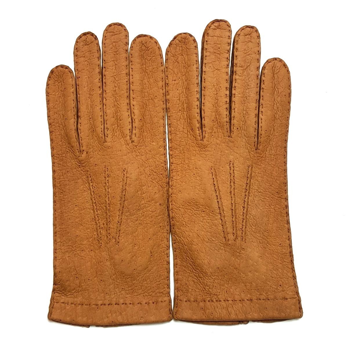 Available in natural peccary tones such as cork and oatmeal, each shade enhances the glove’s warm character. Over time, the leather develops a unique patina — a subtle transformation that mirrors the life of its wearer.