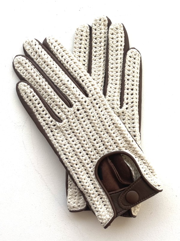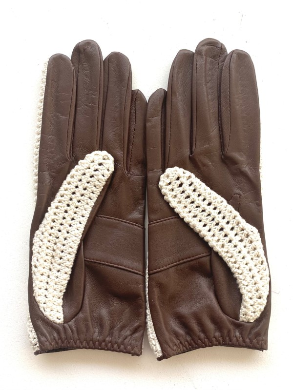 Gants en cuir d'agneau et crochet coton "CONSATANCE".