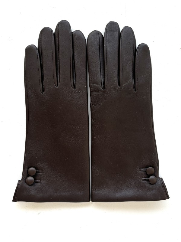 Les gants Clémentine marient la souplesse d’un cuir d’agneau pleine fleur à la douceur d’une doublure en cachemire. Leur ligne féminine est rehaussée de deux boutons fantaisie au poignet, apportant une touche raffinée et intemporelle. Confectionnés artisanalement et cousus machine, ils offrent un confort exceptionnel et une chaleur enveloppante pour la saison froide.