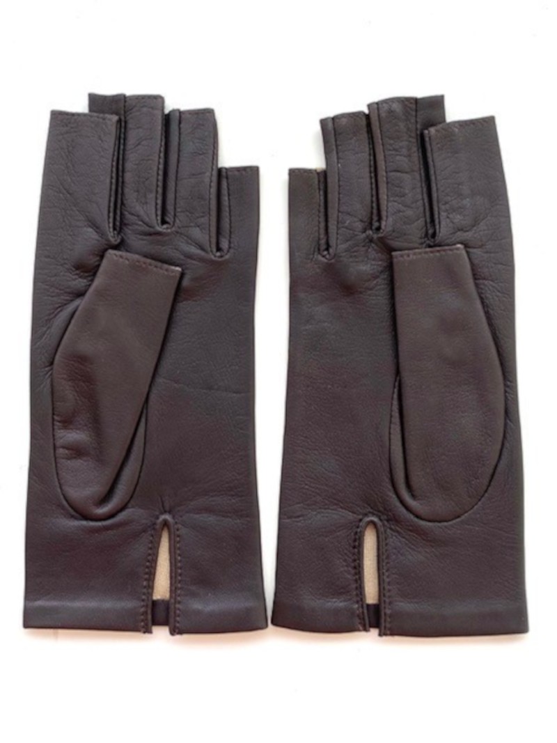 En enfilant les mitaines Jeanne, on découvre une sensation unique : la douceur sensuelle du cuir d’agneau souple qui épouse la main avec délicatesse, et la légèreté de la soie qui caresse la peau comme une seconde nature. Chaque geste s’accompagne de fluidité et de confort, faisant de ces mitaines une véritable extension de soi. Leur coupe mitaine, ouverte sur les doigts, laisse respirer la main et permet une liberté de mouvement appréciable, idéale en toute saison.